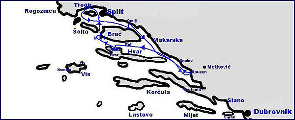 Trogir - Pučišća (Brač) - Omiš - Zaostrog - Metković (Opuzen) - Ausflug: Mostar, Medjugorje - Gradac - Jelsa (Vrboska) - Bol (Milna) - Trogir | ||||||